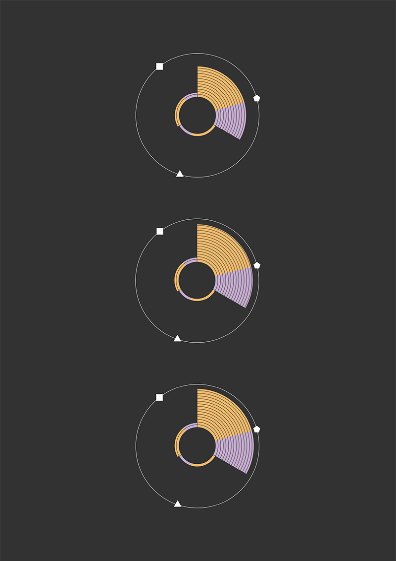 Aufgabe ist es, eine Visualisierung zu erstellen, die einen Zeitablauf darstellt. Das Thema ist frei wählbar. Das kann der persönliche Tagesablauf sein, ein Jahreskalender oder die Übersicht mehrerer Jahrhunderte, in dem bestimmte Daten verarbeitet werden: gesellschaftliche, politische, religiöse, naturwissenschaftliche Ereignisse - welche genau, ist jeder/jedem selbst überlassen. Es gibt dabei allerdings Einschränkungen: die Visualisierung muss auch ohne alphanumerische Zeichen funktionieren, und bei der Umsetzung darf nur mit Grundformen ohne Transparenz gearbeitet werden.